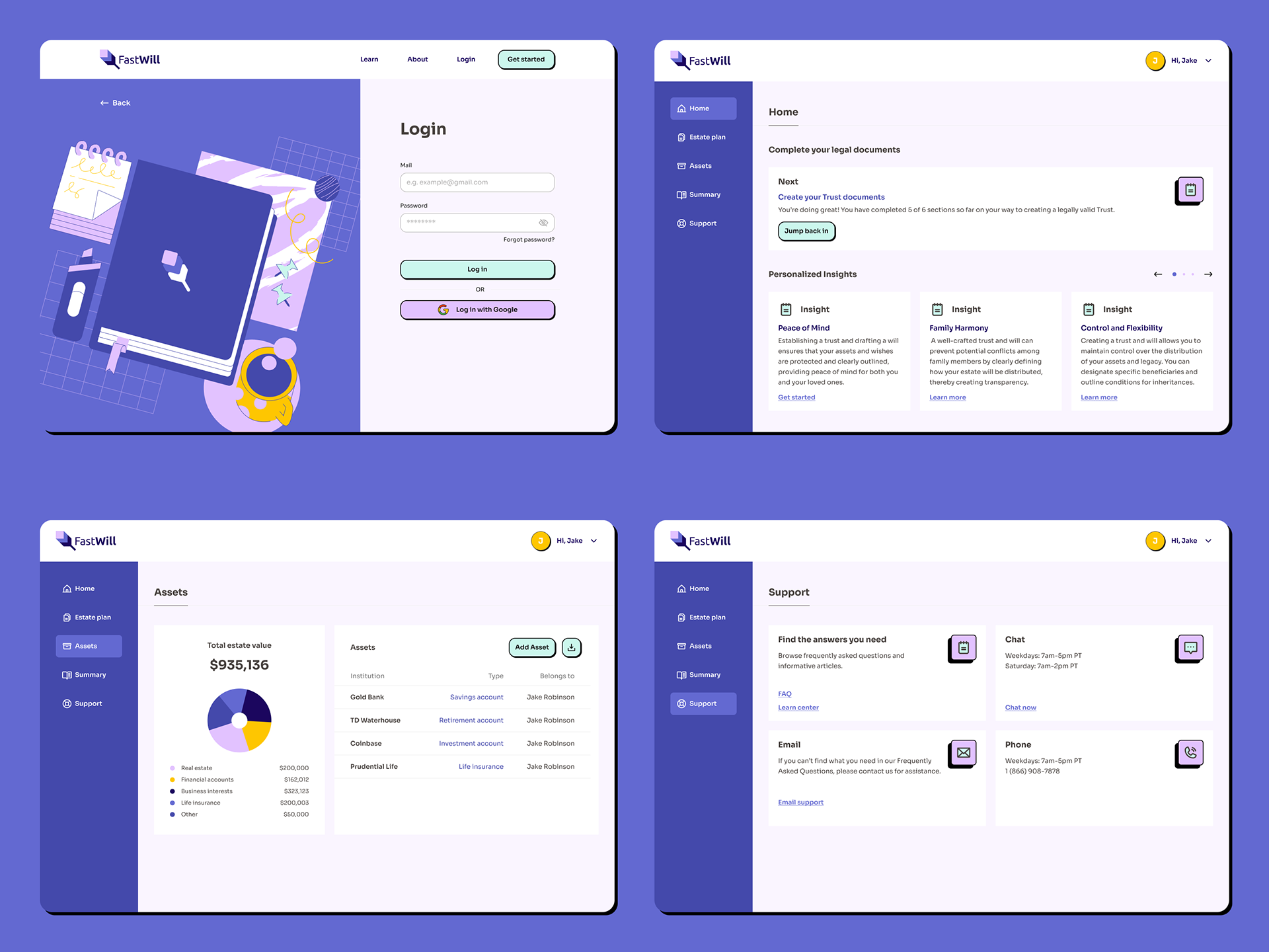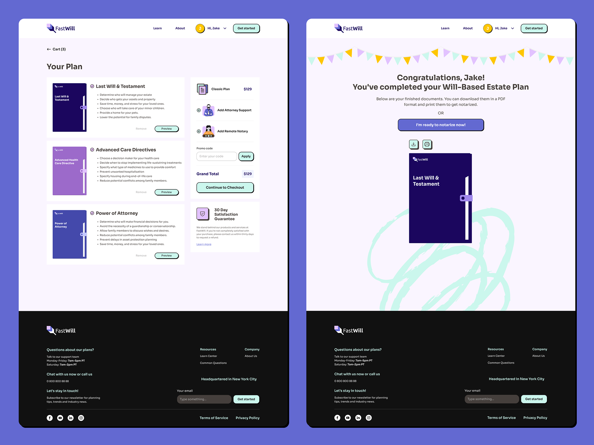 FastWill's mission is to make Estate Planning simple, affordable, and accessible to everyone! Their easy-to-use system allows users to build a full Will-based estate plans in as little as 20 minutes, all from the comfort of their home. The company was starting from scratch in terms of brand identity, and website design, and retained me to created a full suite of digital products; website, admin dashboard, email templates, banner ads, and social media assets.
