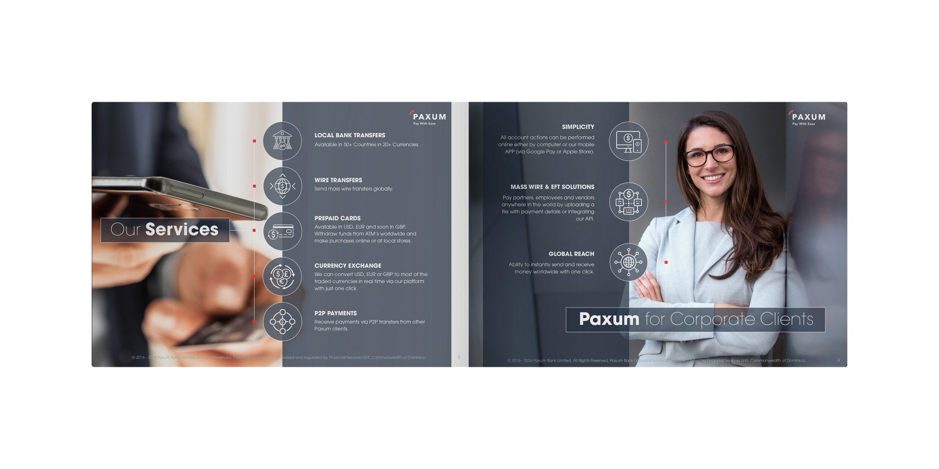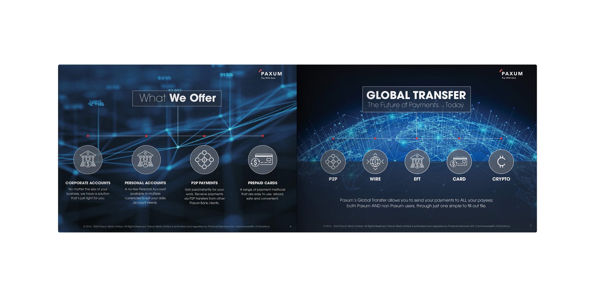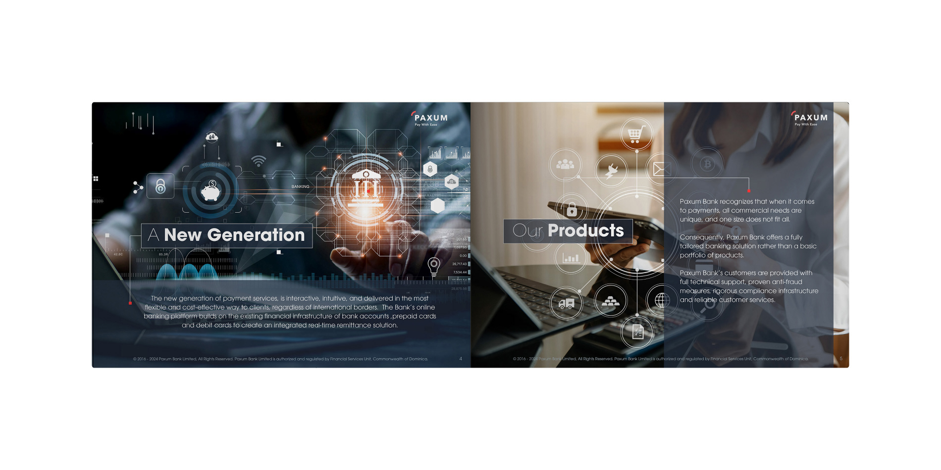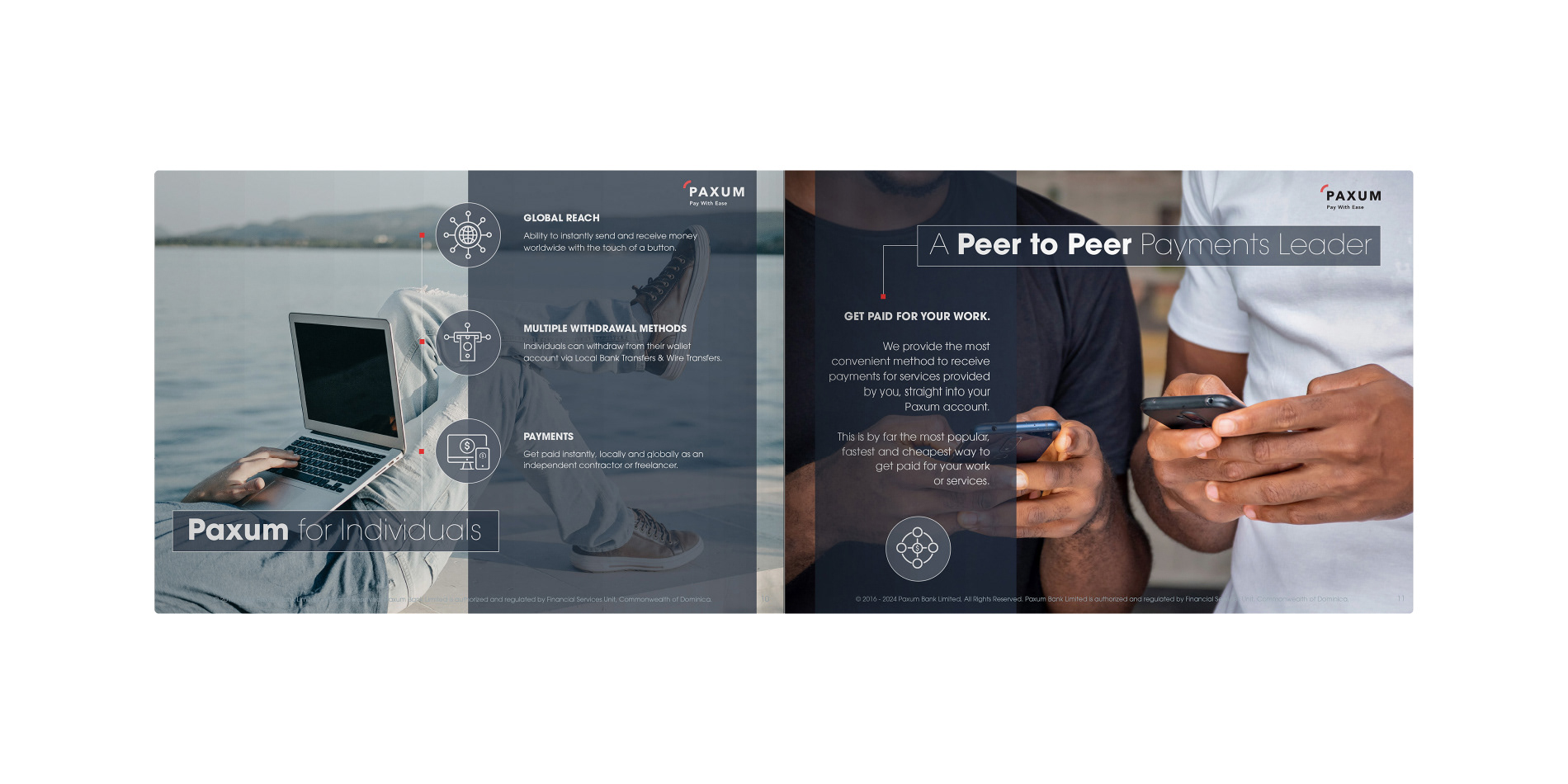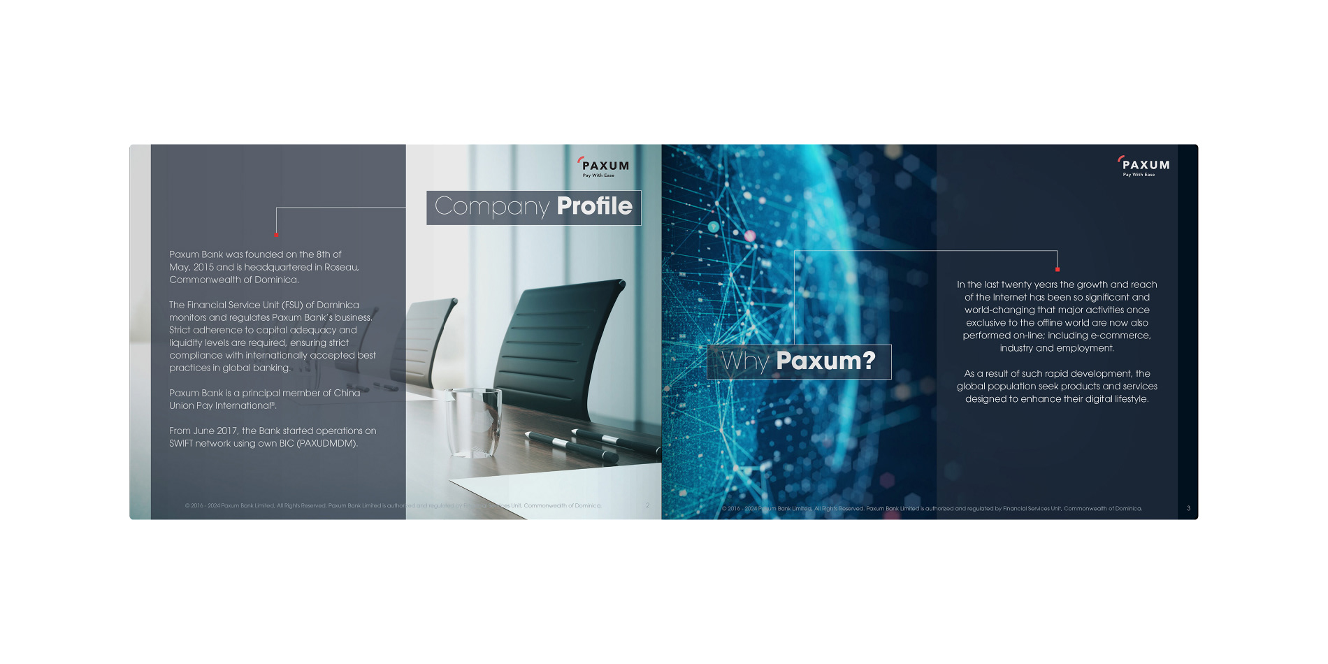 Paxum Bank required a more cohesive brand identity for its investor communications, specifically needing a brand designer to develop a new print presentation. I led the project by conducting a brand audit, designing a refreshed visual system, and meticulously applying it to a new, impactful print presentation. This resulted in significantly improved professionalism and persuasive power for Paxum Bank's investor meetings.